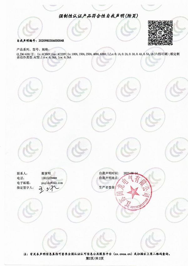 GLM6L-800-630自我申明